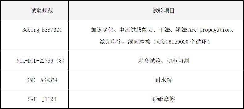 這種安裝線能在 230℃下使用,比 Spec55 提高了 30℃,且耐潮、耐水解、耐磨、耐輻照,也具有阻燃性,且克服了單純 PI 絕緣不耐串弧、不耐氧原子的性能,絕緣層之間粘結力強、不能剝離。內層絕緣材料為 Kapton XP 或 OAsis TWT561,外層用 Tefzel 2171 生產的電線,按 ASTM 進行剝離試驗(T-Peel test)測得的粘結力(剝離力)達到了 100~250g/in-width,高的可達 1000 g/in-width,甚至 1500 g/in-width。正因為這一切性能使該產品適用于航空航天。