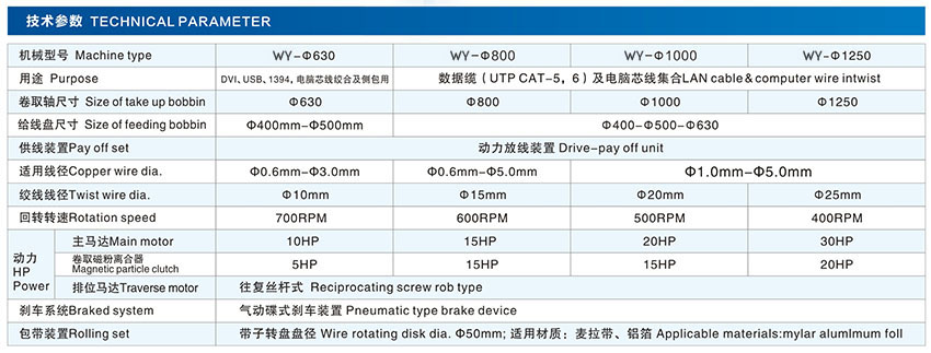用途:適用于控制電纜、通訊電纜、電源線等PE或PVC被覆芯線絞合及中心包帶或側放包帶一次性完成。